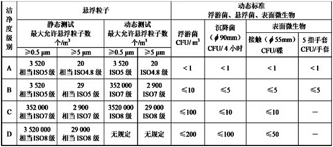 生產(chǎn)區(qū)的潔凈區(qū)分為A、B、C、D 4個級別,各個區(qū)域 潔凈度采納G際標準ISO 14644-1,明確占用狀態(tài)下不同關(guān)注粒徑時的**大濃度限值。
