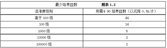沉降菌測定時,培養皿應布置在有代表性的地點和氣流擾動極小的地點,培養皿數可與按附表1.1確定的采樣點數相同,但培養皿**少數量應滿足附表1.2的規定。 #p#分頁標題#e#